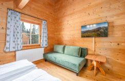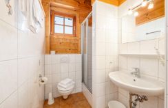 AusstattungDie Hütten sind komplett aus Holz gebaut und sehr komfortabel und äußerst gemütlich eingerichtet. EG: Große Hüttenstube (ca. 30m²) mit gepolsterter Sitzecke, SAT-TV, W-LAN, Couch und Kaminofen. Die indirekte Beleuchtung und das gehackte Altholz vermitteln eine heimelige Wohnatmosphäre. Perfekt ausgestattete Küchenecke mit E-Herd, Backofen, Kühlschrank mit Gefrierfach, Geschirrspüler, Mikrowelle, Kaffeemaschine, Wasserkocher, Toaster, Bierzapfanlage (für jene Fässer welche vor Ort erhältlich sind). Auf Wunsch Hochstuhl, Kinderbett (klappbares Reisebett 60x120cm). Ausgang zur Sonnenterrasse mit Sitzbank und Griller. Bad mit Sauna, 2 Duschen und Whirlpool. 1 WC. OG: 2 Doppelzimmer, 2 Schlafzimmer für je 2-4 Personen mit je 1 Doppelbett und Ausziehcouch (160x200cm), 2 DU/WC, 1 WC. Zentralheizung, teilweise Fußbodenheizung. Elektrischer Schuhtrockner vorhanden. Wir bitten in den Hütten nicht zu rauchen!